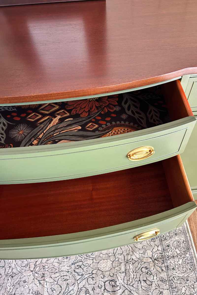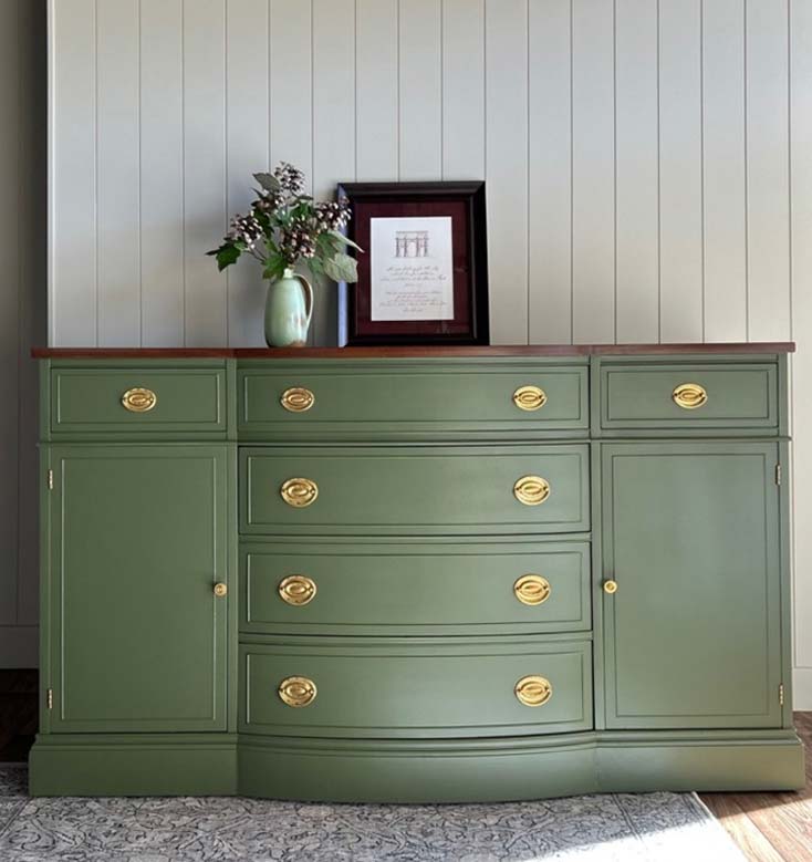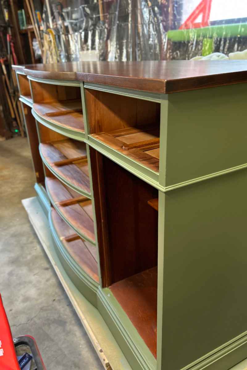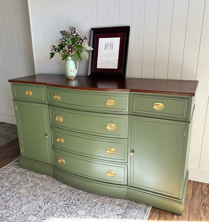 We were able to work closely with them to determine what styles and finishes were most attractive to them and what they hoped to end up with size and character-wise. We ultimately found a buffet which fit with the look and dimensions they desired and once they approved of this particular buffet, we made the purchase for them. They were then able to select the colors of paint and stain as well as choose their preferred hardware finish. It was a lot of fun for us to work with them in customizing their piece, making it into something specifically suited to them and their home.